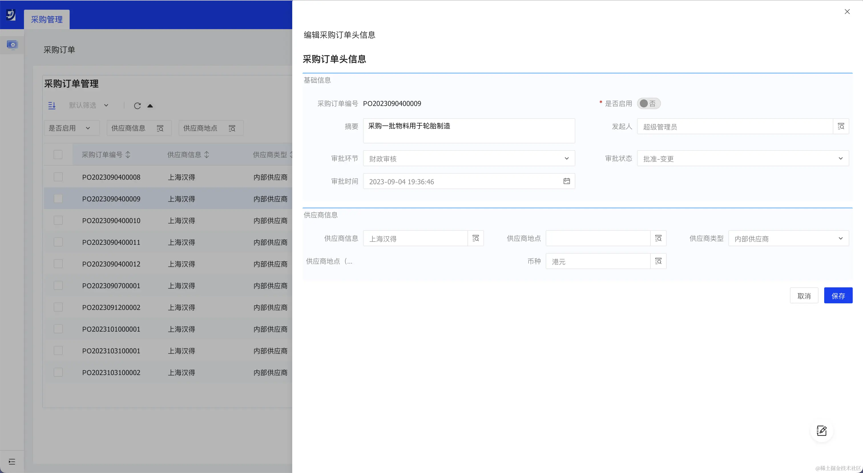 表单页模板适用于单表的数据源,比如采购订单详情。