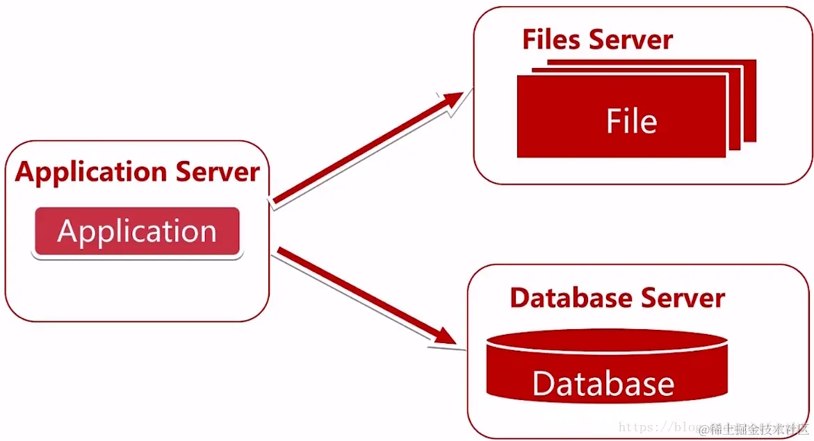 利润我们这张图利用了三台服务器,分离之后可以提高一定的性能和可用性,假如文件服务器挂了,我们还是可以操作应用和数据库的。