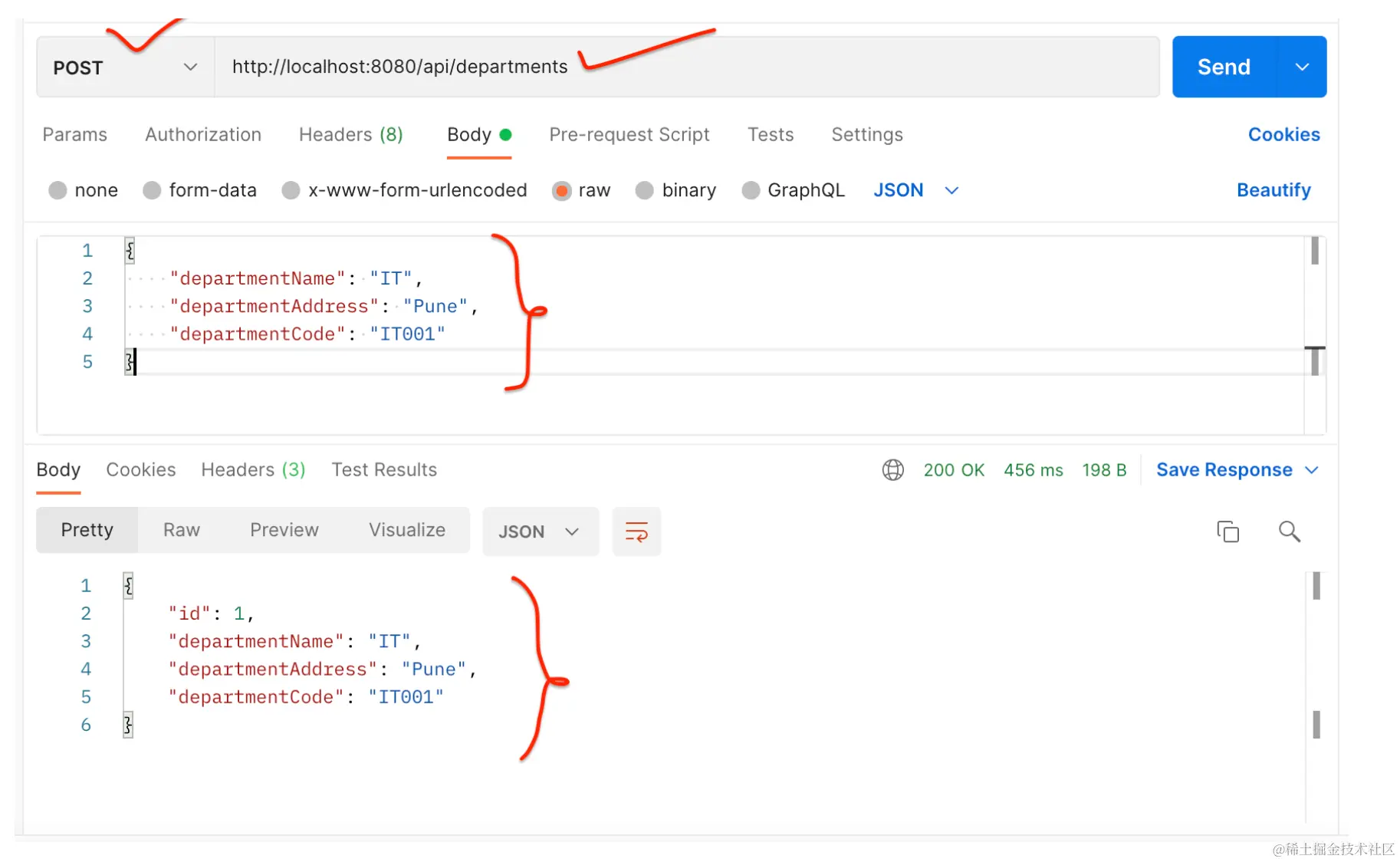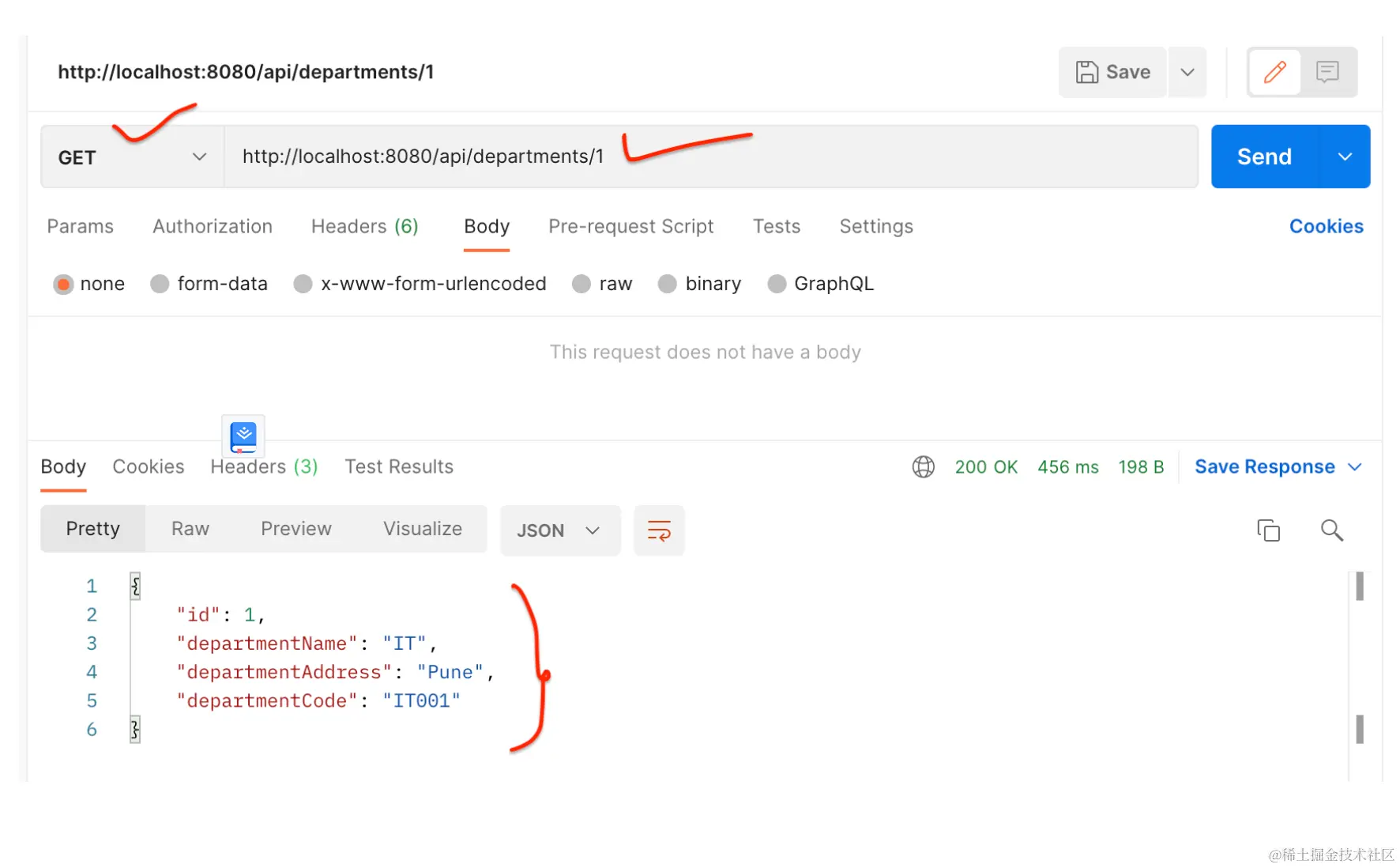 请注意,响应包含用户的部门。这说明我们已成功从 UserService 到 DepartmentService 进行 REST API 调用。