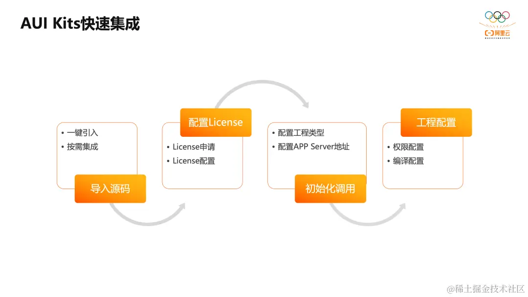 本节介绍如何在您的App工程中快速集成AUI Kits,从而实现互动直播功能,具体可分为以下四步骤:
