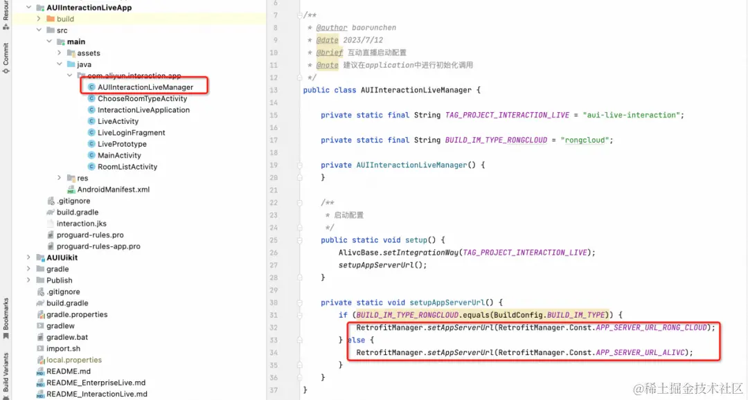 初始化调用包含几部分,注册项目类型,和替换APP Server地址。每个工程中App目录下提供了一个Manager类,参考setup()方法,即可完成初始化调用。