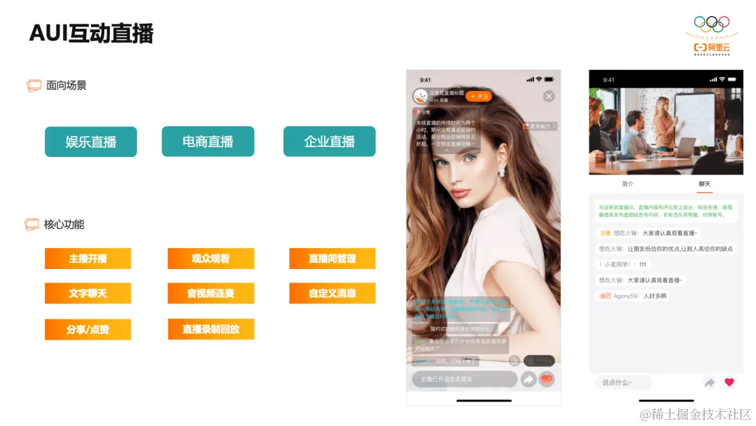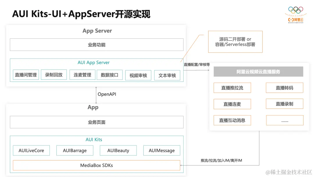 互动直播AUI Kit方案,包含客户端的UI组件以及后端的服务组件。