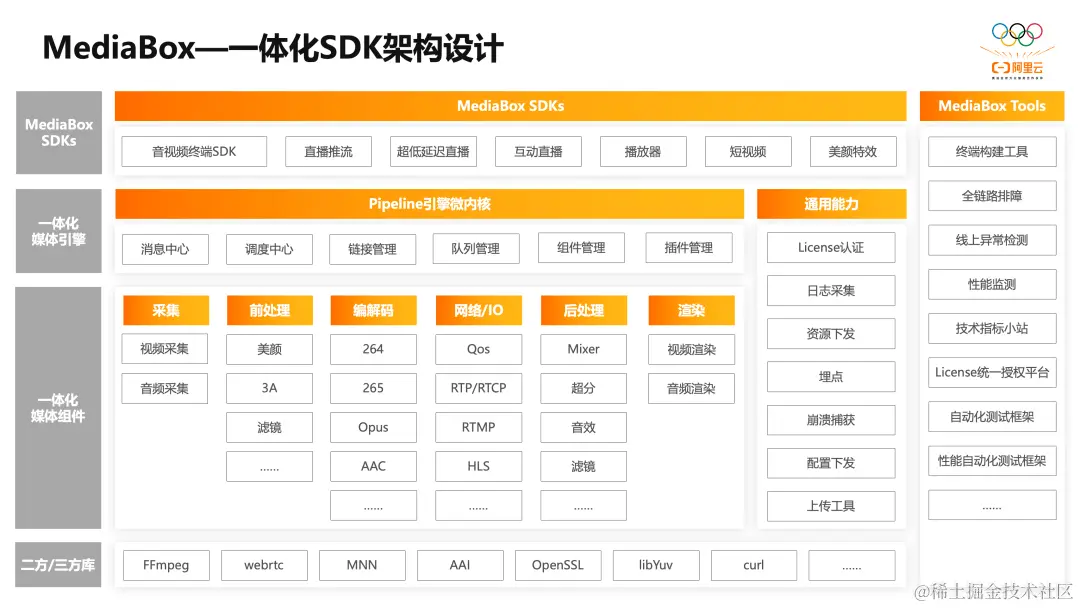 在保证MediaBox的高可靠性和高性能方面,不同SDK共用同一套通用组件,不仅实现了采集、前后处理、编解码、封装/解封装、渲染等音视频基础组件的统一,也实现了如:Crash捕获、License授权、埋点上报等基础业务组件的统一,在优化SDK稳定性的同时,也提升了SDK的性能。