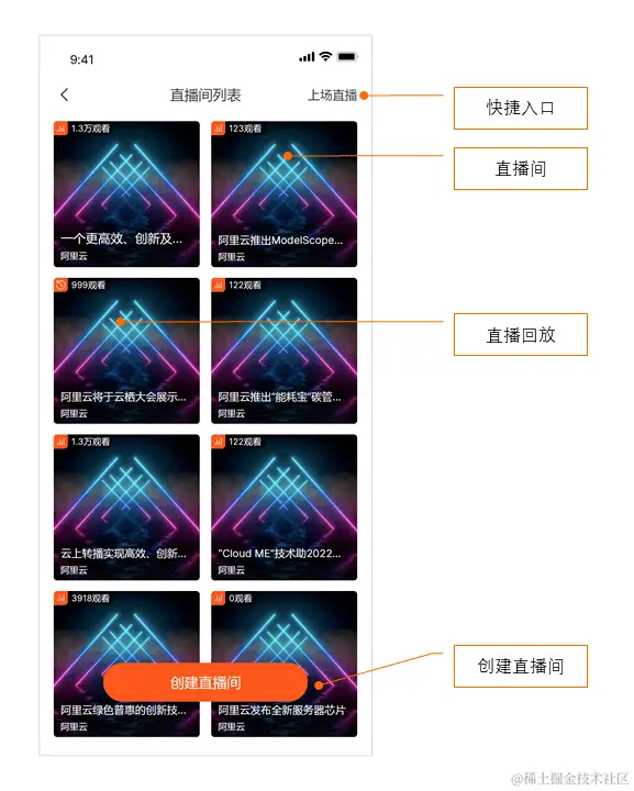 一键开播:集成互动直播AUI Kit低代码开发方案,主播可以通过电脑、手机、直播一体机等设备开播,来吸引观众;观众可以通过直播间列表进行直播观看,或者通过快捷入口观看直播回放,从而满足不同观看需求。