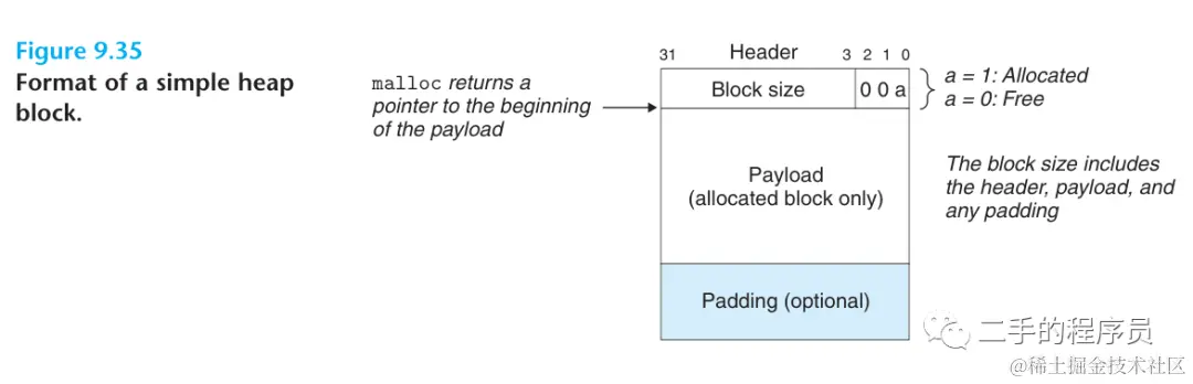 在之前的文章里面。我们做完了 csapp 的 malloc lab,实现了一个简易的 malloc 与 free 方法。回忆一下一个最简单的 heap block 的结构: