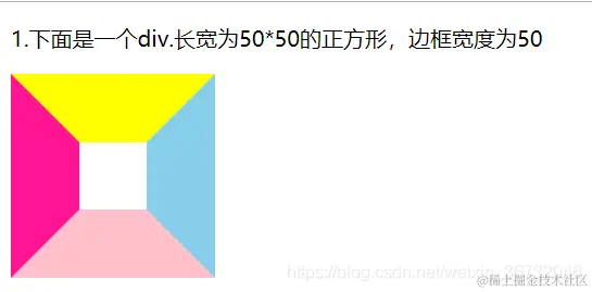 <p>1.下面是一个div.长宽为50*50的正方形,边框宽度为50</p>
