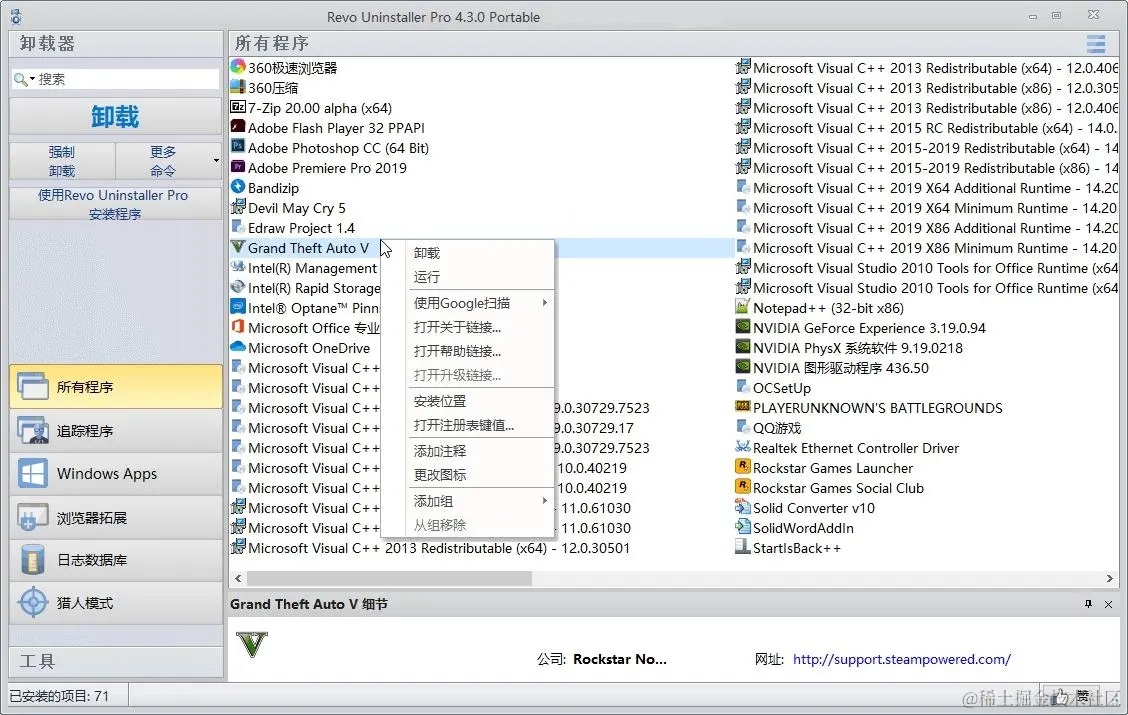 Revo Uninstaller 是一款强大的软件卸载工具,可以完全卸载任何软件,清除所有的残留文件和注册表项。它有三种卸载模式,可以根据用户的需求选择不同的扫描深度。它还有实时安装监控、强制卸载、批量卸载、命令行卸载等功能,可以让用户轻松管理自己的软件。Revo Uninstaller还提供了8种额外的清理工具,可以优化系统性能,提高电脑速度。