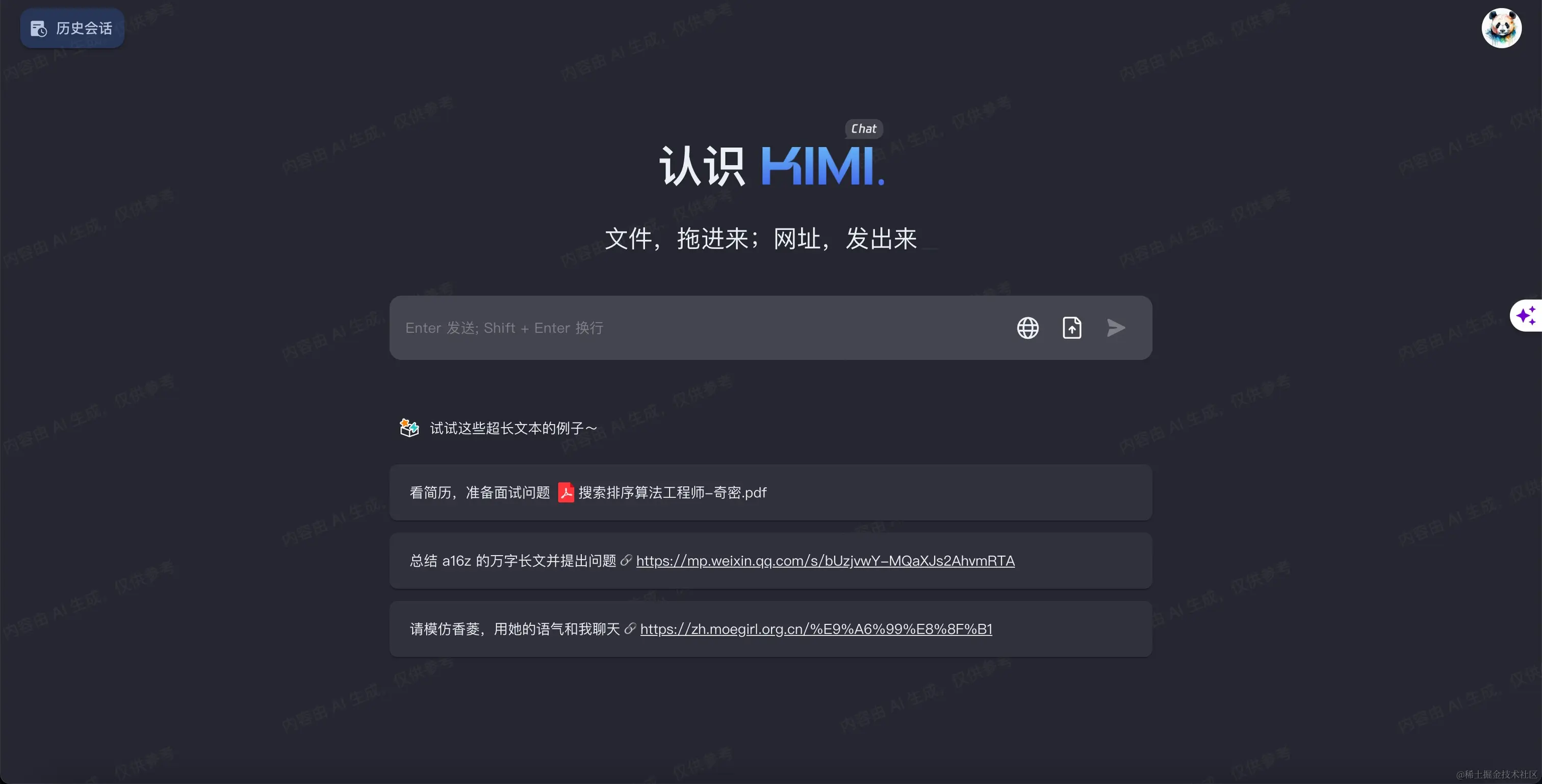 首推 KIMI Chat , 支持联网, 和文件上传. 网址: kimi.moonshot.cn/