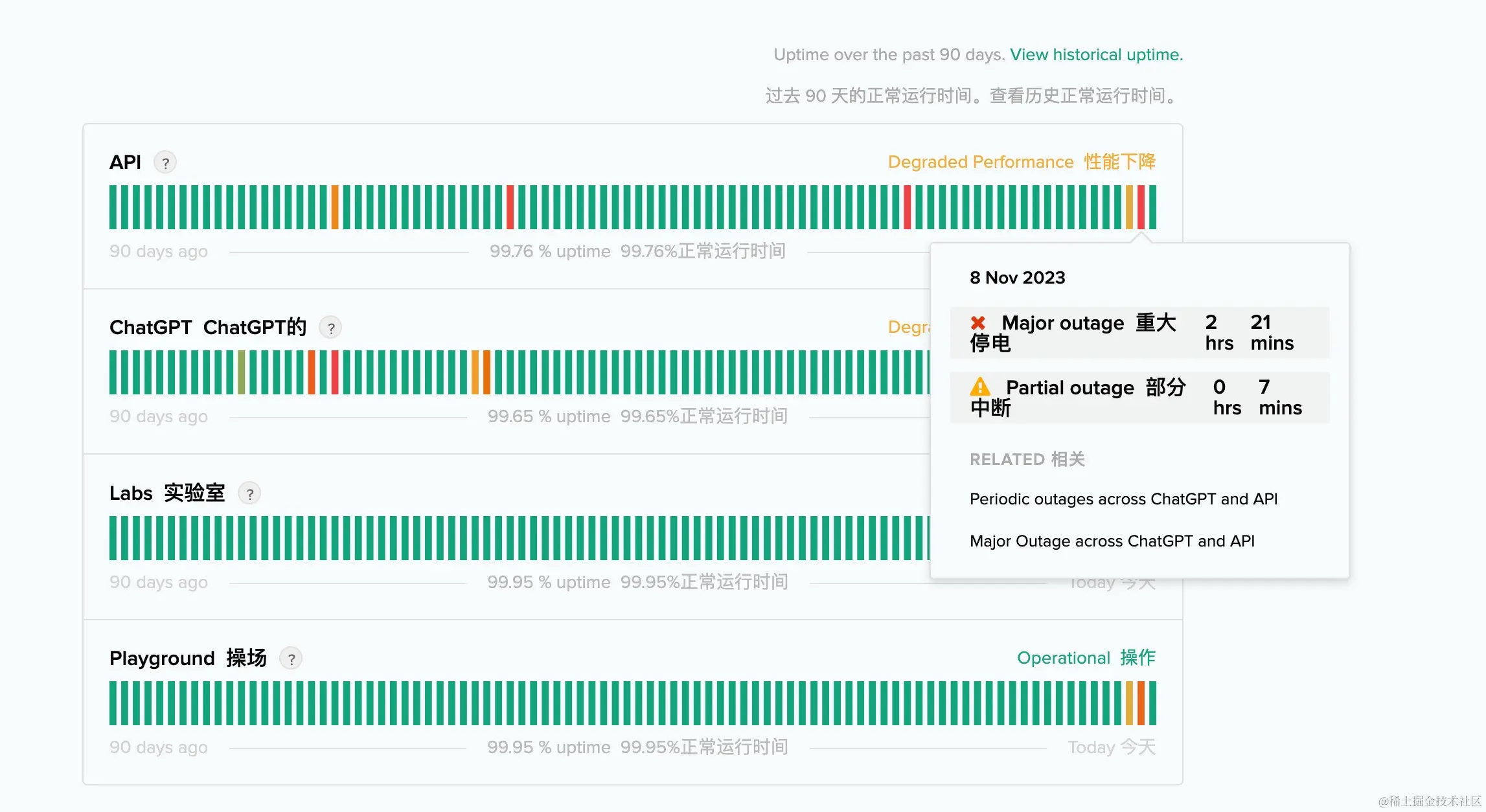 大家可以通过如下链接来实时查看 ChatGPT 的服务状态: