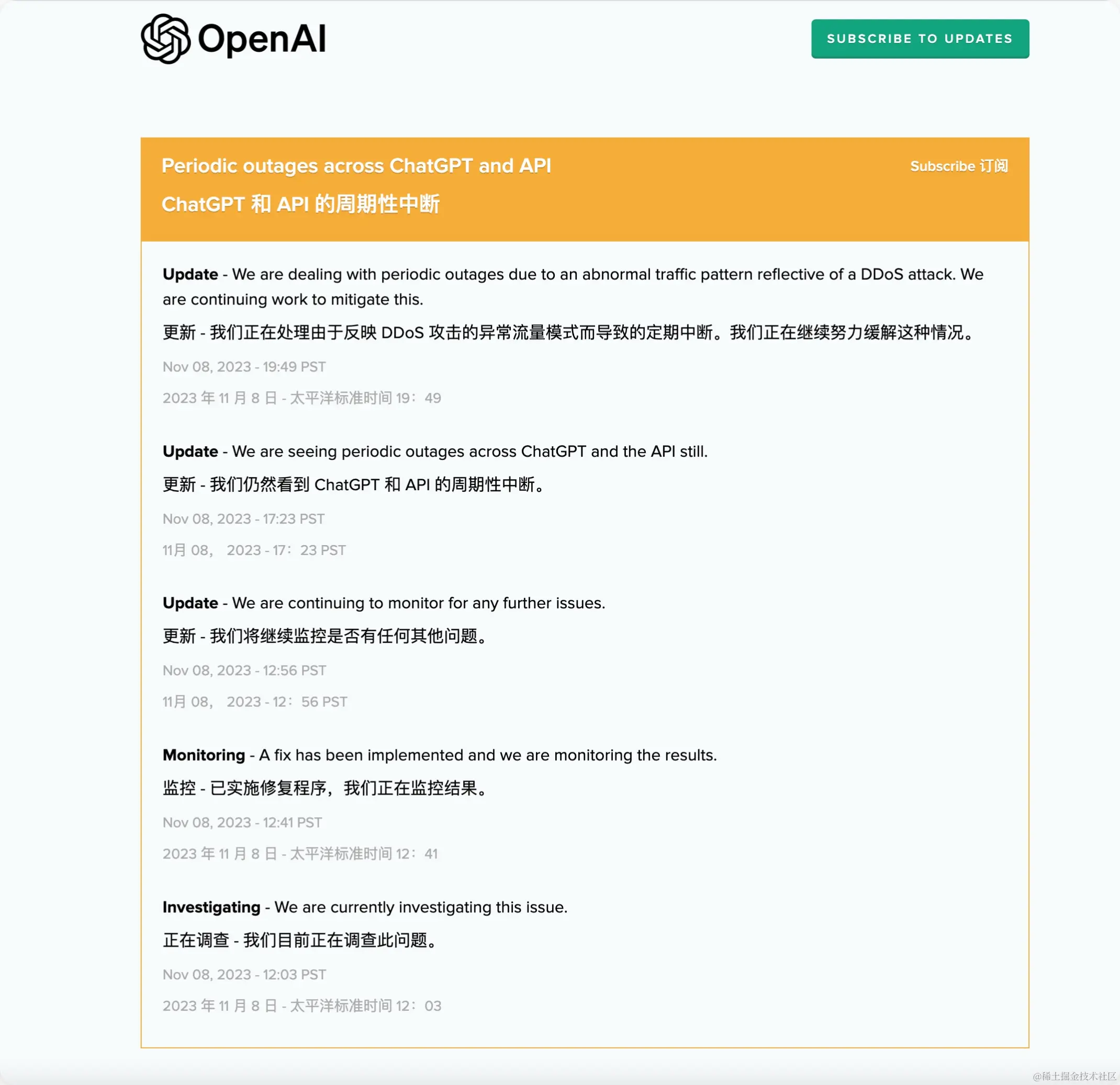 我们看下昨天 OpenAI 关于此次事故的更新内容: