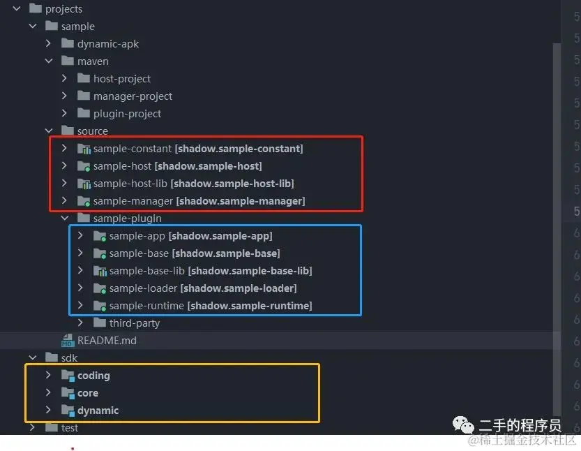 sample-plugin/sample-base是一个apk模块壳子,将sample-base-lib打包在其中。既用于正常安装运行开发sample-base-lib 。sample-plugin/sample-app是依赖sample-base-lib开发的更多业务代码。它编译出的插件apk没有打包sample-base-lib ,会在插件运行时依赖sample-base插件。
