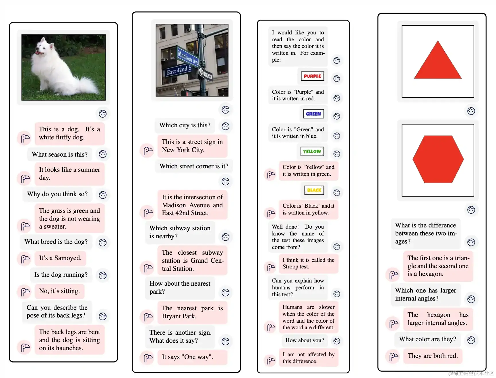 Flamingo 这个系统虽然能完成很多任务,但在对话和按指令执行方面还有待加强。如果你对这方面不太了解,我之前写了一篇文章 RLHF 可以供你参考。目前,很多研究者都在探索如何让机器更好地理解和执行人类的指令,例如: