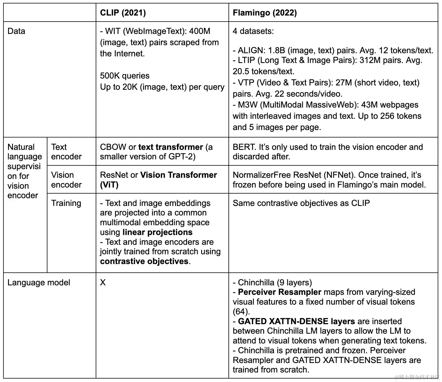 Flamingo 在处理文本时选择了 BERT 技术,而不是常见的 GPT-2。