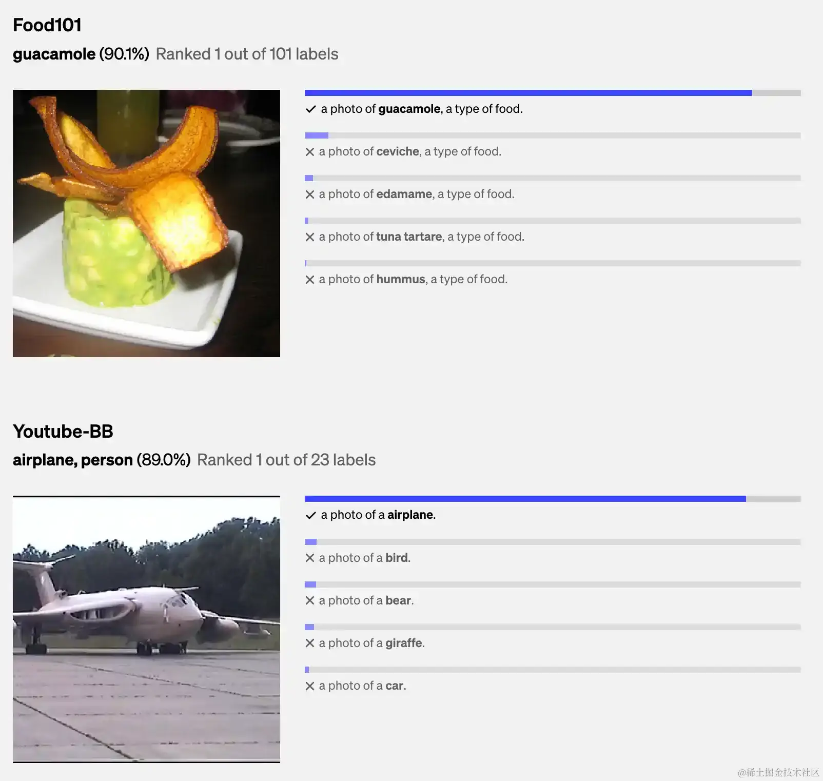 训练这个多模态向量空间 CLIP 还产生了一个强大的图像编码器,让它在很多图像识别任务上都表现出色,甚至不需要额外的训练。这个编码器不仅可以帮助识别图像,还可以生成图像、回答与图像相关的问题,甚至搜索与文字描述相符的图像。Flamingo 和 LLaVa 使用 CLIP 作为图像编码器。而 DALL-E 则用 CLIP 来筛选生成的图像。目前,我们还不确定 GPT-4V 是否也使用了 CLIP。