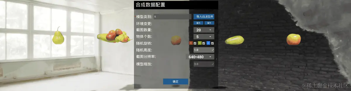 1、将 GLB 文件添加到场景后,接下来就可以配置 UnrealSynth 合成数据生成参数,参数配置说明如下: