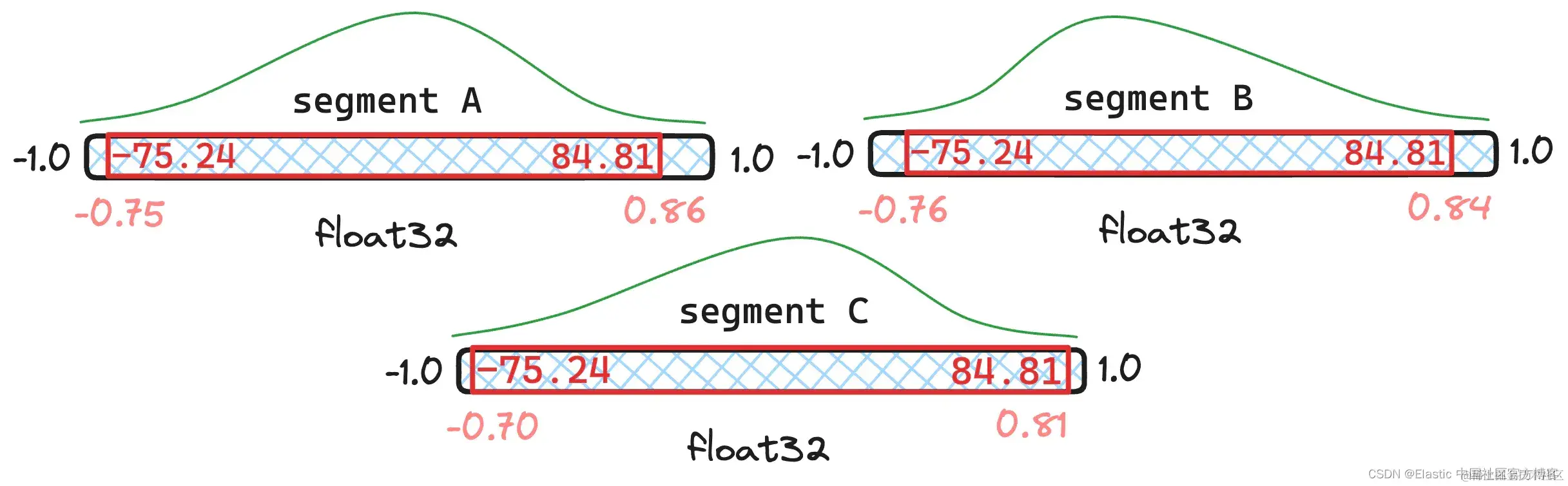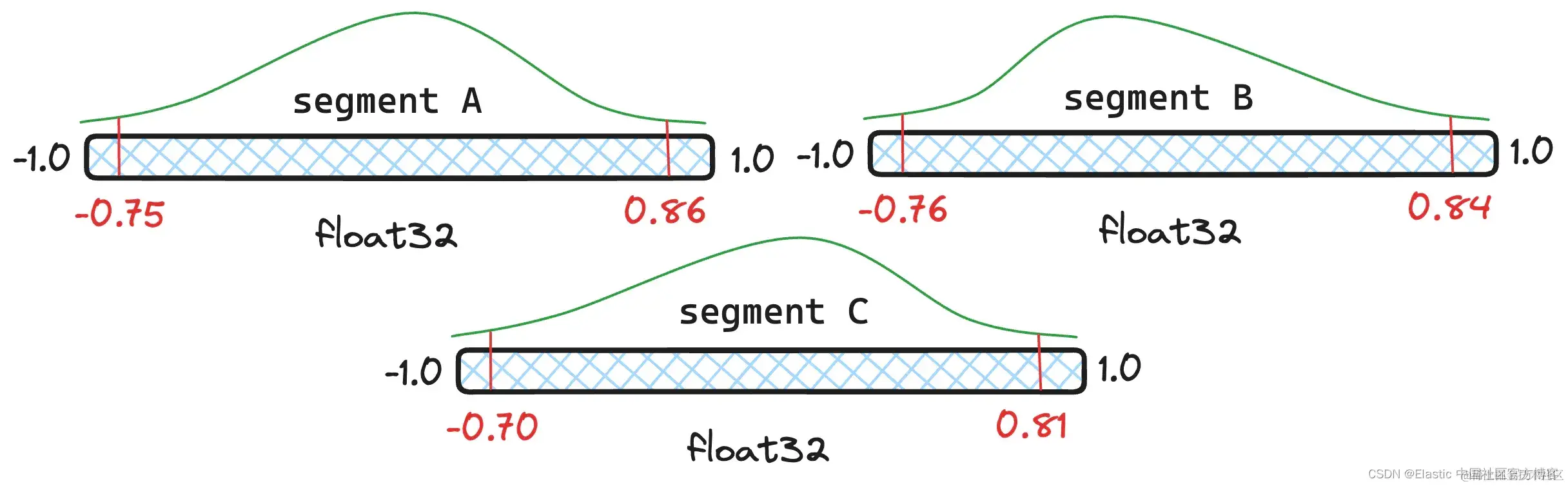 Lucene 的向量量化会随着时间的推移自动调整。 由于 Lucene 采用只读段架构设计,因此我们可以保证每个段中的数据没有更改,并在代码中明确划分何时可以更新。 这意味着在分段合并期间,我们可以根据需要调整分位数,并可能重新量化向量。
