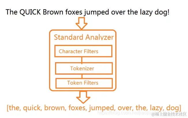 - Token Filters:针对Tokenizer处理的单词进行再加工,比如转小写、删除或增新等处理