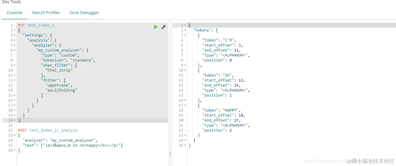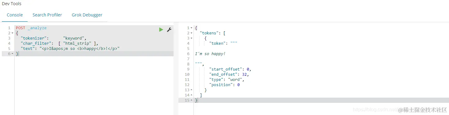 - Character Filters:针对原始文本进行处理,比如去除html标签