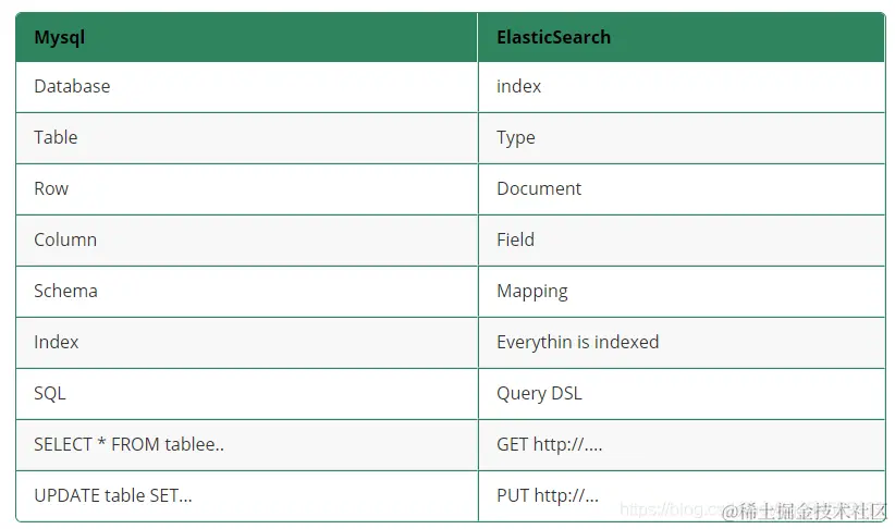 - 为方便理解,可以对照下ES和MySQL的关系: