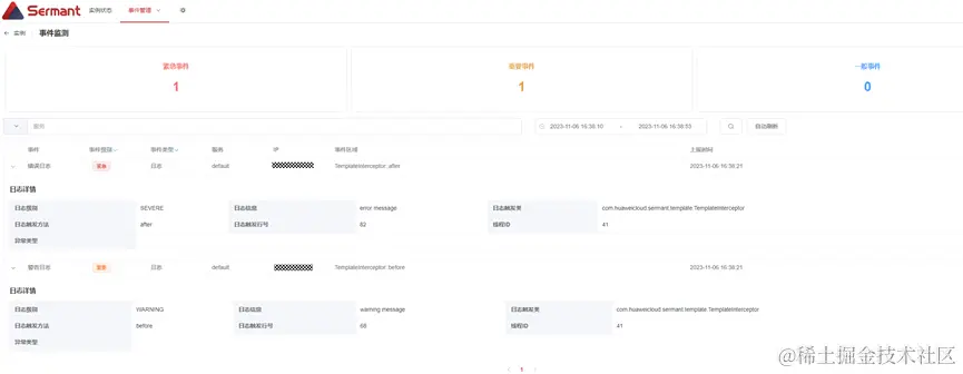 前往Sermant Backend前端页面可以看到上报的异常信息: