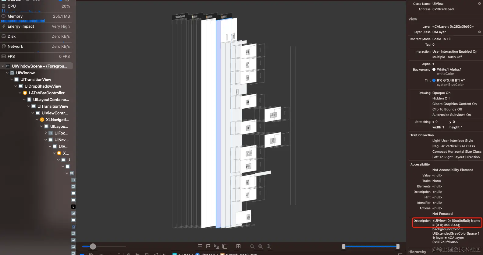 我们从图层可以看到这时候当前VC的view的高度包含了tabbar的高度。