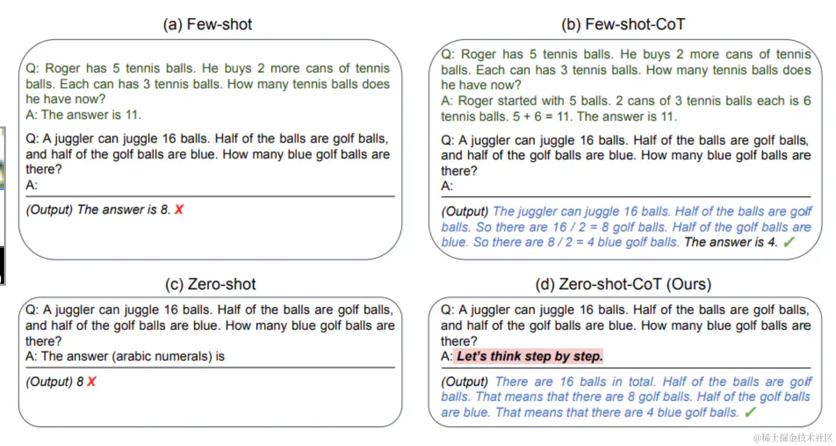 在Wei等人(2022)的研究中,他们提出了一种名为链式思考(Chain of Thought,简称CoT)的提示方法,通过操作演绎推理的中间步骤,实现了复杂推理能力的表现。此方法可与少样本提示相结合,以便在回答复杂问题之前进行更深入的分析。近年的一项新研究零样本CoT((Kojima等人, 2022) 更进一步提及“Let’s think step by step”,这一想法得到了广泛关注与讨论。