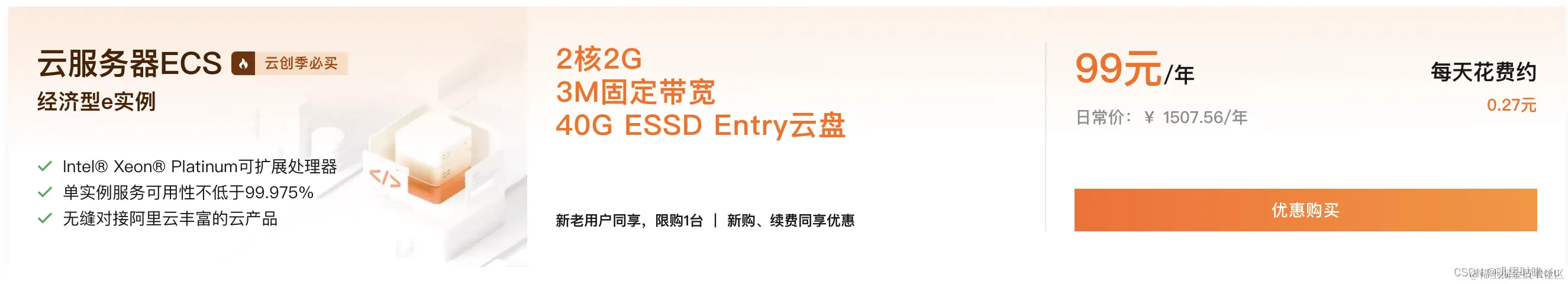 特别地,阿里云现在为大学生提供了一项特惠活动。仅需99元/年,您就可以获得2核2G配置和3M固定带宽的服务器,非常适合承载学术项目和个人开发任务。这是一次绝佳的机会,让您以最低的成本体验高质量的云服务。