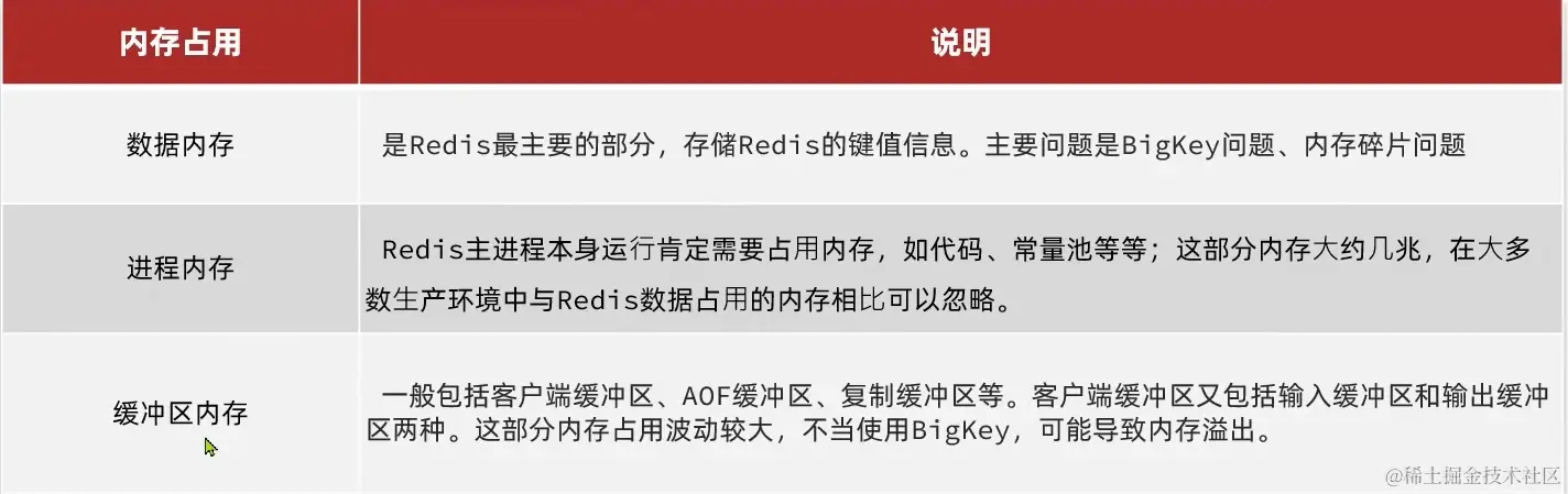 当Redis内存不足时,可能导致Key频繁被删除、响应时间变长、QPS不稳定等问题。当内存使用率达到90%以上时就需要我们警惕,并快速定位到内存占用的原因。