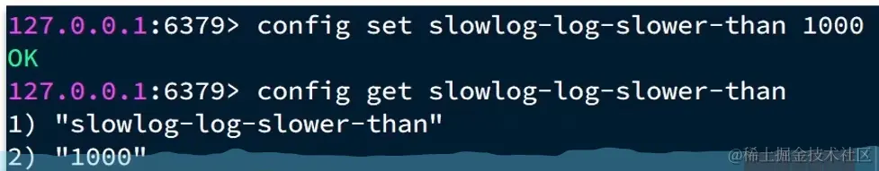 ●slowlog-max-len: 慢查询日志(本质是一个队列)的长度。默认是128,建议1000