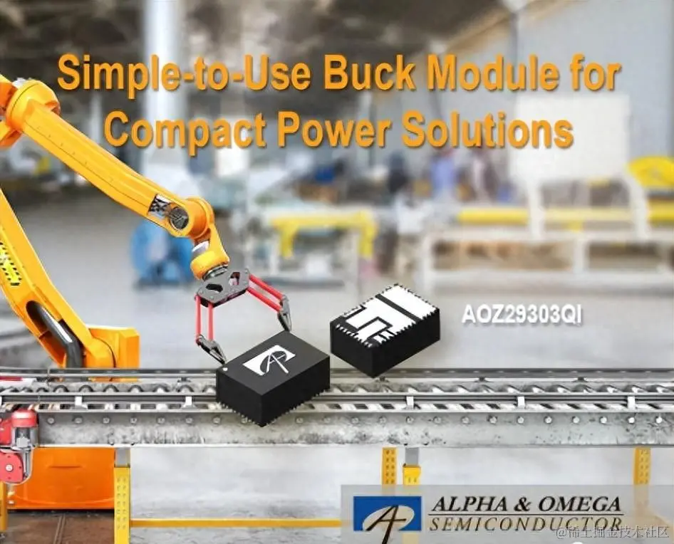 AOZ29303QI ,适用于工业应用中宽输入电压范围,最高支持3A的降压模块。包括控制器 IC、功率 MOSFET、续流二极管、自举电容和电感。