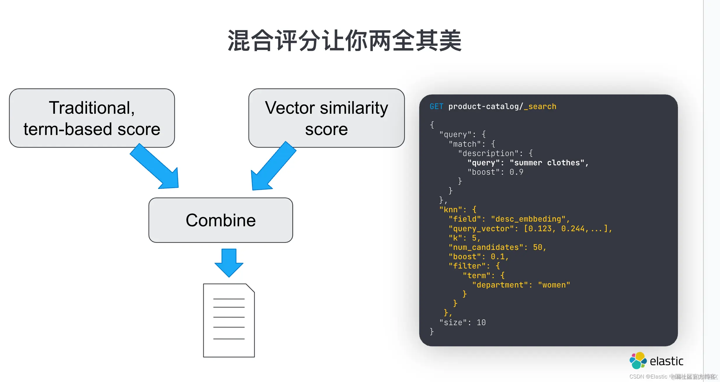 在这里,我们讨论了如何使用 Elasticsearch Go 客户端在 Elasticsearch 中组合向量搜索和关键字搜索。