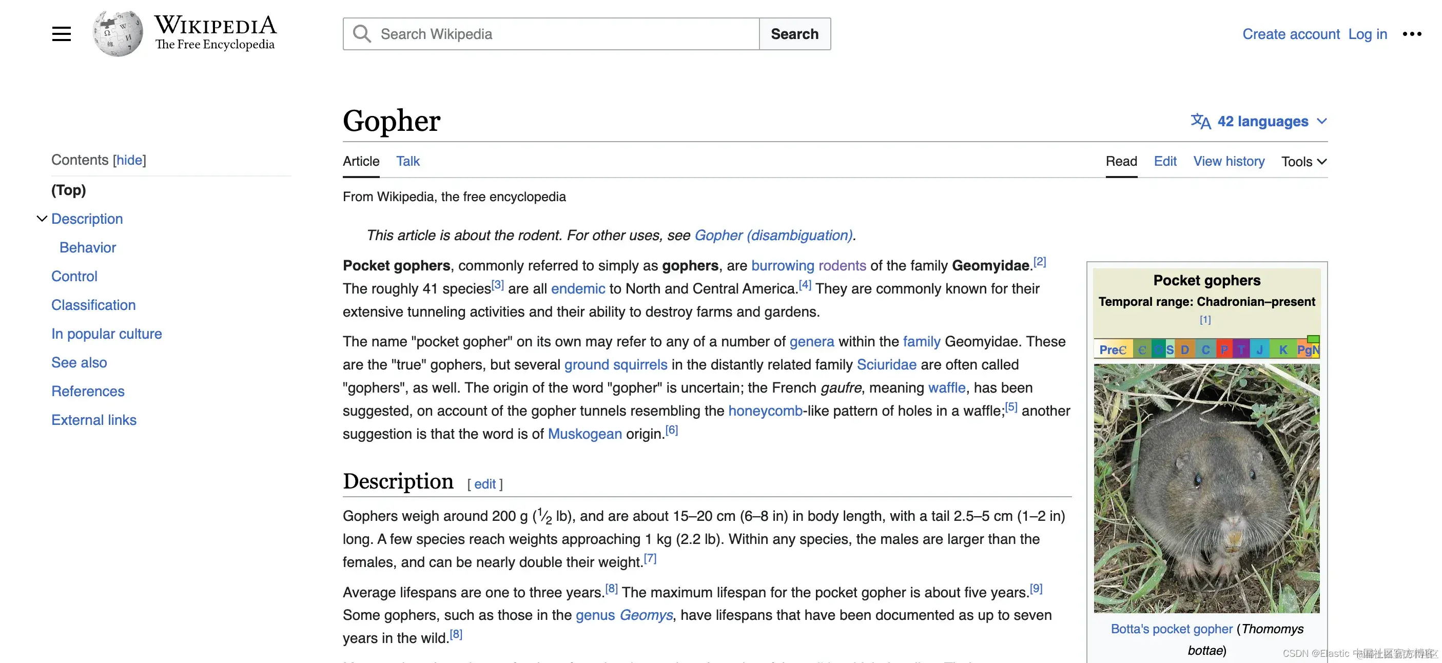 - 创建你自己的 Elasticsearch 集群,其中填充了一组基于啮齿动物的页面,包括来自维基百科的我们友好的 Gopher: