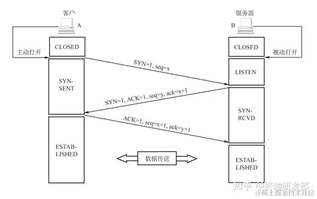 - TCP开始时先通过三次握手建立连接、交换各自的接受窗口大小以及初始化各自的发送序列号等。(1:SYC=1;2:SYN=1,ACK=1;3:ACK=1)