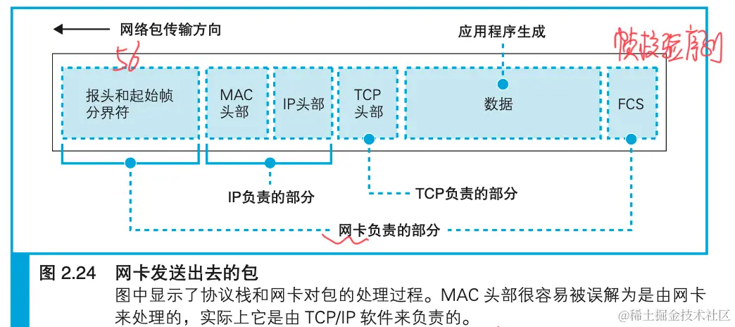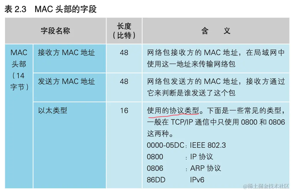 网卡驱动被中断处理程序调用后,会从网卡的缓存区读取数据包,并通过MAC头部的以太网类型判断协议类型,然后交给不同的协议栈。若为TCP/IP协议,就交给TCP/IP协议栈。