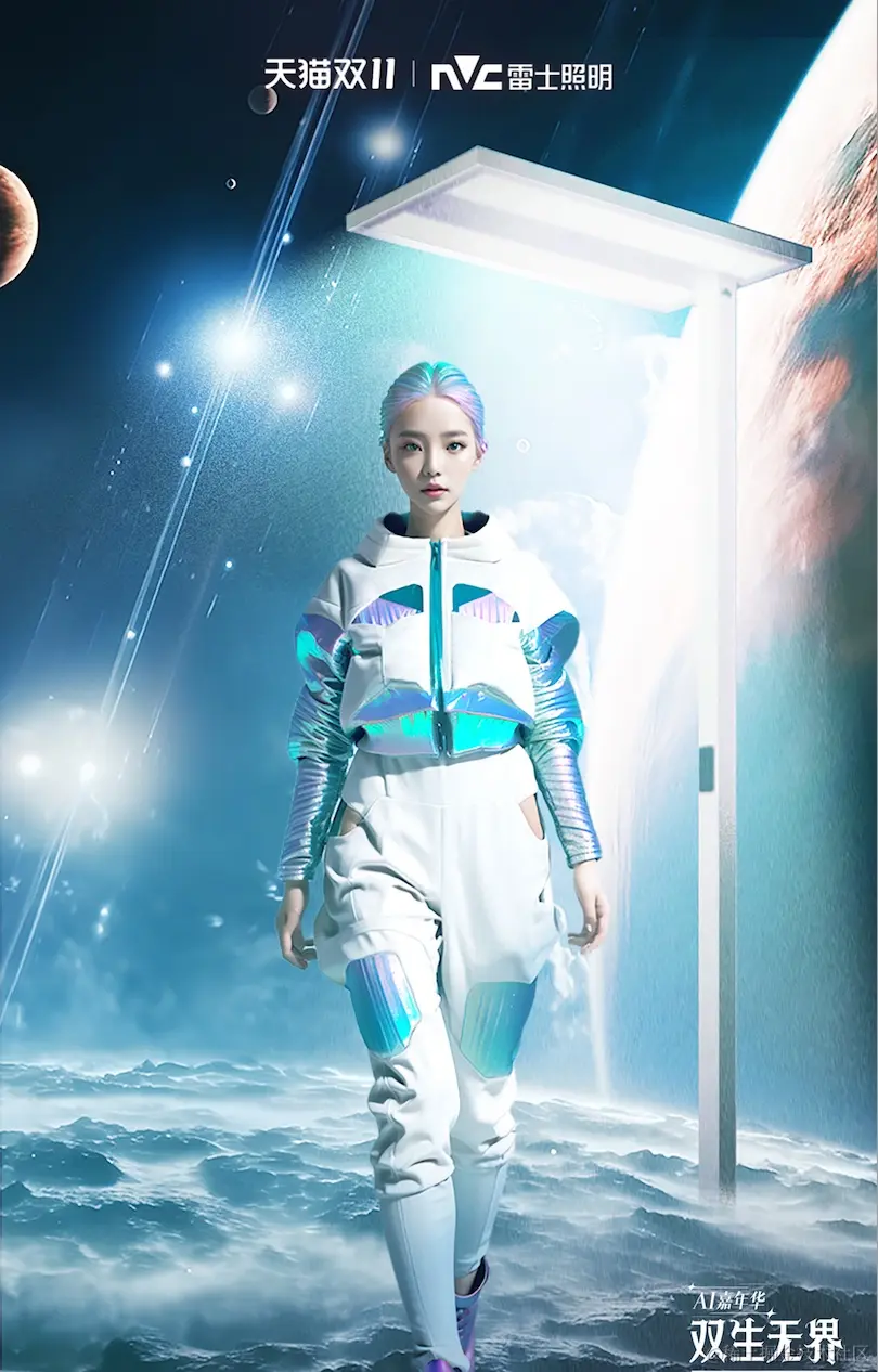 AI大大提升了营销创意的生产效率,品牌只需输出关键词和方向,就能携手AI协作专家迅速产出和试验模型。譬如,整场“AI的轩言”演出的舞美、人物形象设计,演出调度、动态效果设计和3D交互等,都是由AI协作完成,原先需要数月的工作量,如今只需十几天就能交付。