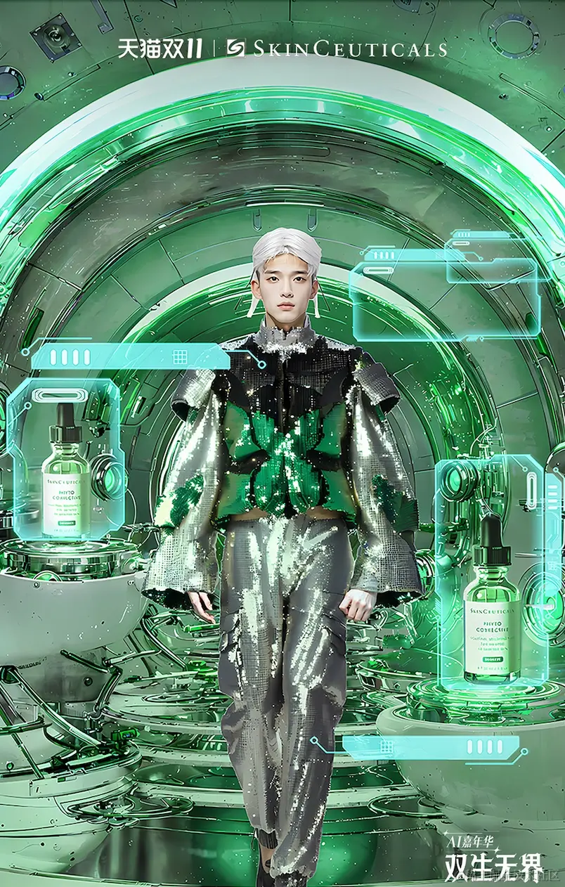 “AI技术不仅是本次活动的核心主题,更是我们在进行方案策划与执行期间的应用能力,比如场景设计方面,所有品牌馆的设计都是根据大牌的调性及沟通,协同AI进行设计。”主创团队透露了AI大脑在其中的角色——计算并构建出诸多品牌在虚拟场景中的生态与面貌,甚至为品牌“出谋划策”、提供创新方案。