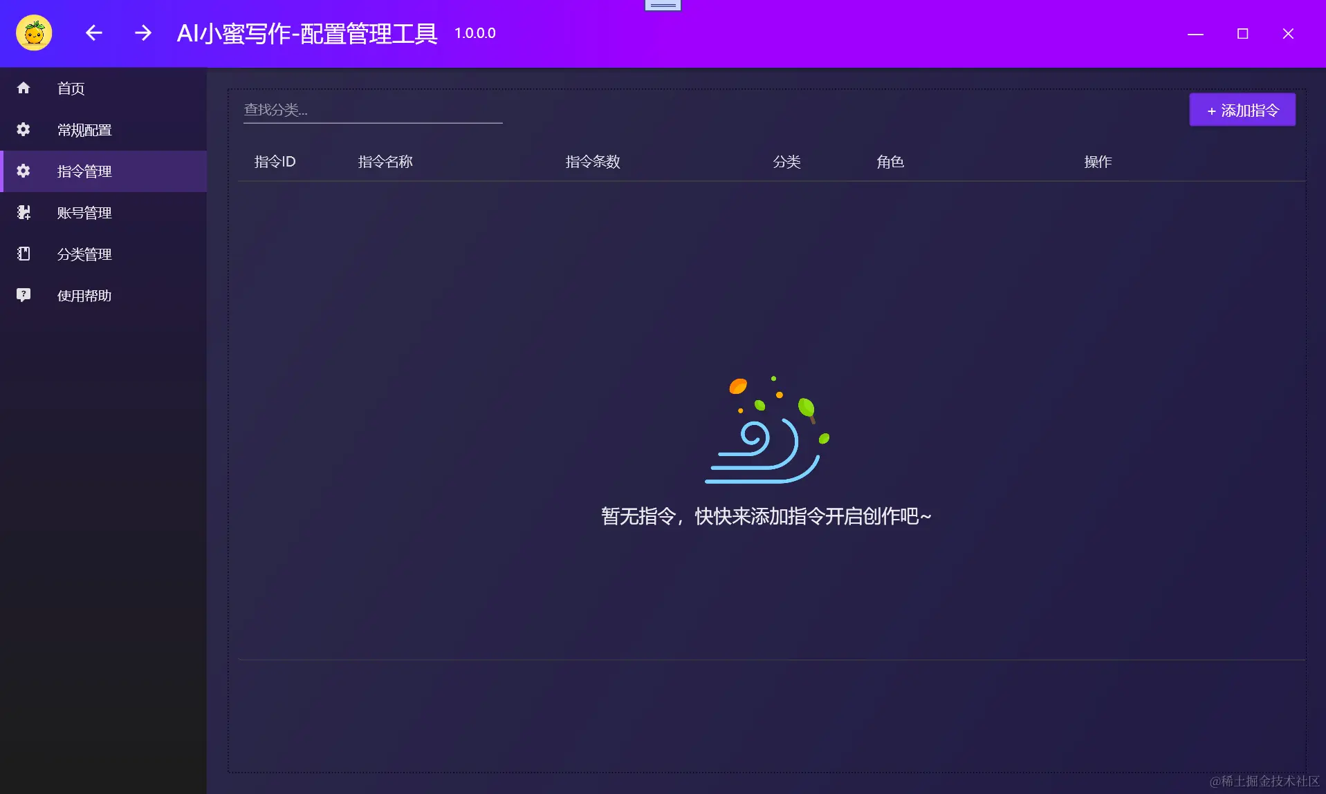填写:指令名称,角色名称,选择分类,指令合集