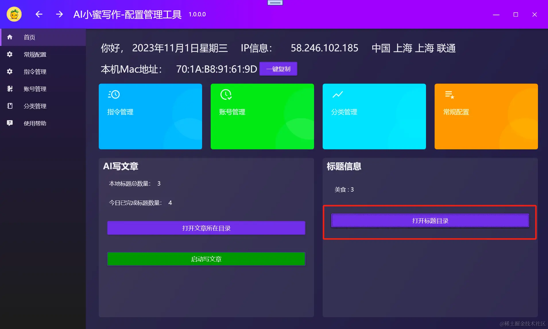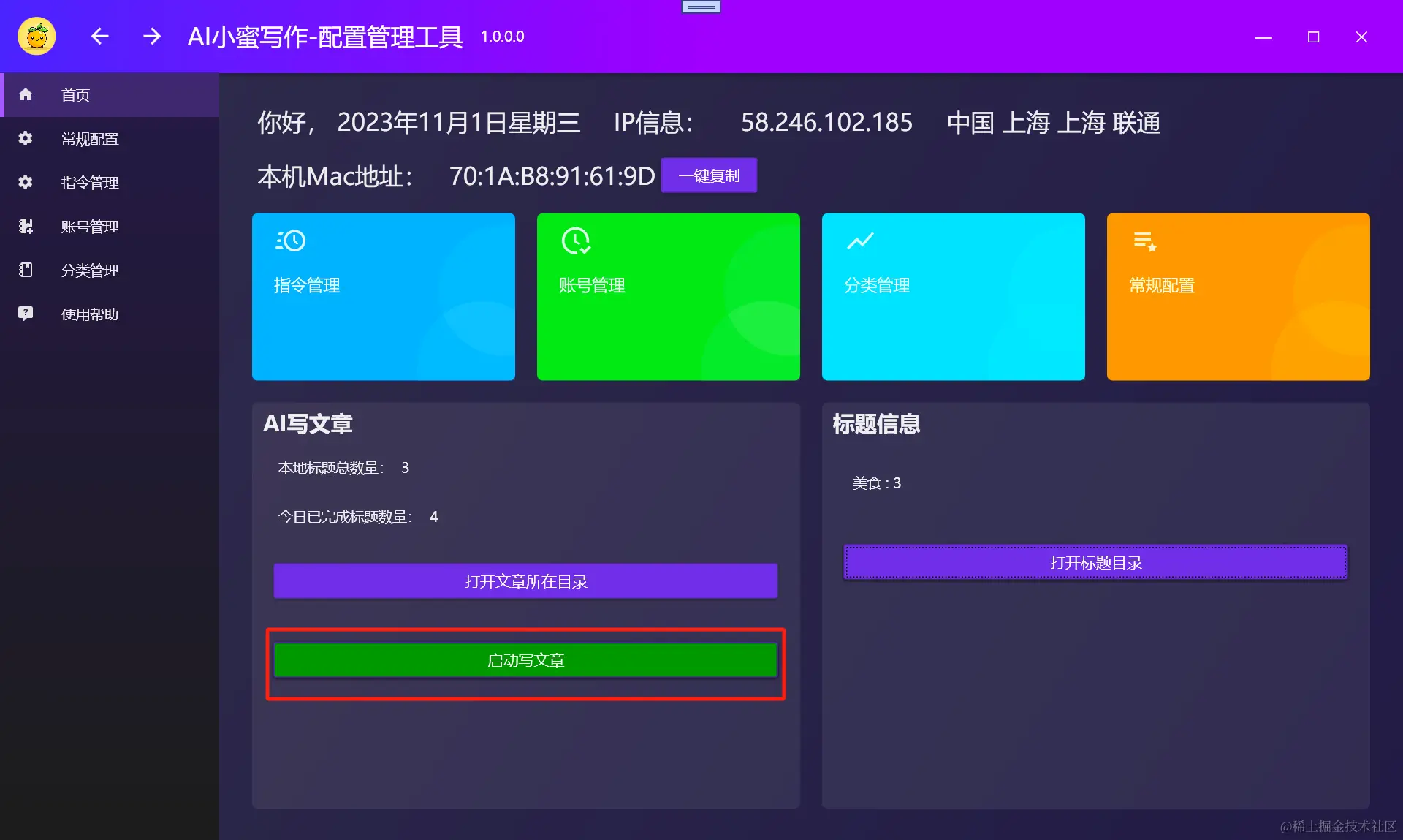 首页/常规配置=》启动写文章