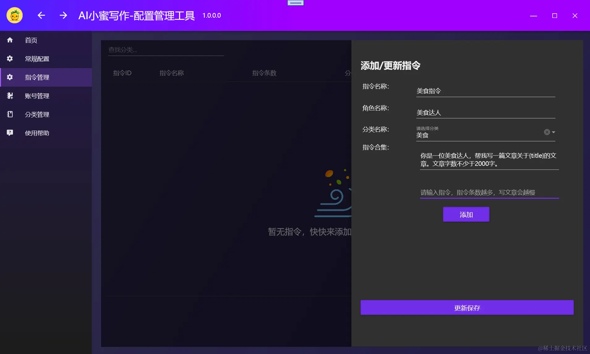 3.一个分类下面也可以创建多个指令,程序会随机选择一个指令进行创作。