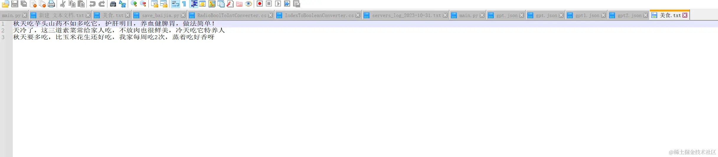 在这个美食.txt里面写上你要创作的标题