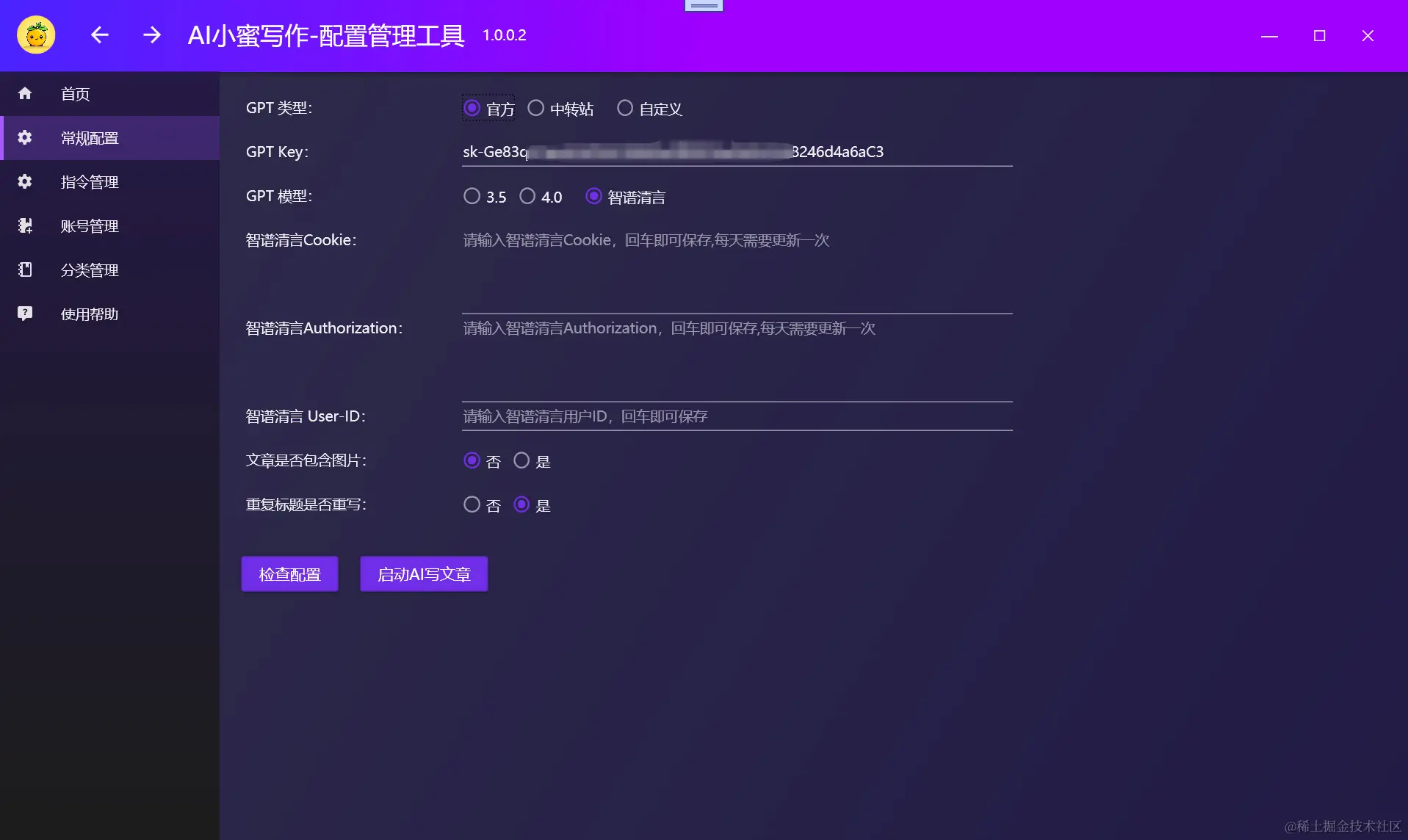 重点说下:智谱清言Cookie、智谱清言Authorization和智谱清言 User-ID的配置