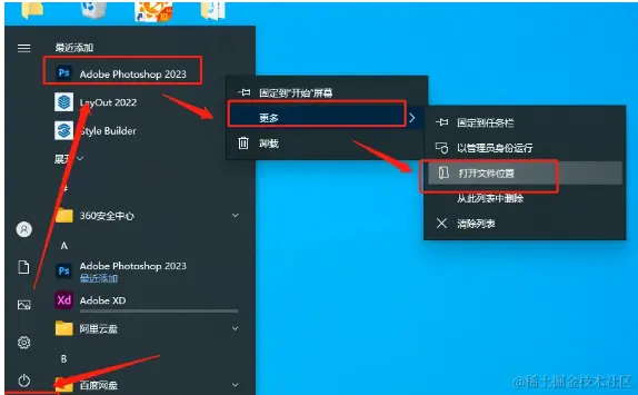 十、在电脑开始菜单中找到软件,右键选择更多-打开文件位置