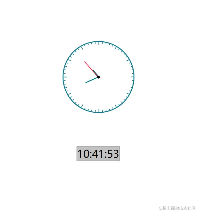(2)刻度时钟:先做一个大盒子放在最外面,用border-radius=40%画出表框,刻度有小时刻度和分钟刻度,总共60个,所以做一个60次的循环,逢5就赋上更大的height制造小时刻度,最后用旋转来做表针