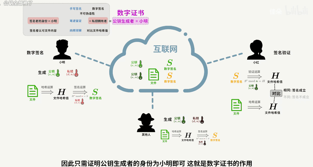 这样就解决了中途有人把公钥掉包,并且发送假的数字签名,利用了错误的公钥顺利的解密了得到了相同摘要,而自己还不知道