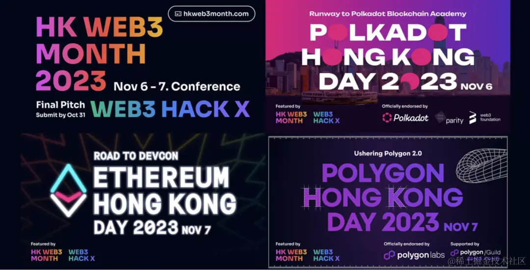 HK Web3 Month 活动从 2023 年 10 月 29 日持续至 11 月 18 日,线下的大会行程安排在 11 月 6 日至 7 日,已于香港顺利举行。HK Web3 Month 旨在号召和聚集最具影响力的 Web3 先驱一起探索亚太地区新兴的 Web3 经济,大会期间同时设有“Polkadot HK Day”,“Ethereum HK Day: Road to Devcon”,“Polygon HK Day: Ushering Polygon 2.0“ 等围绕各生态的活动议程,吸引了 Web3 行业内广泛的关注和参与。