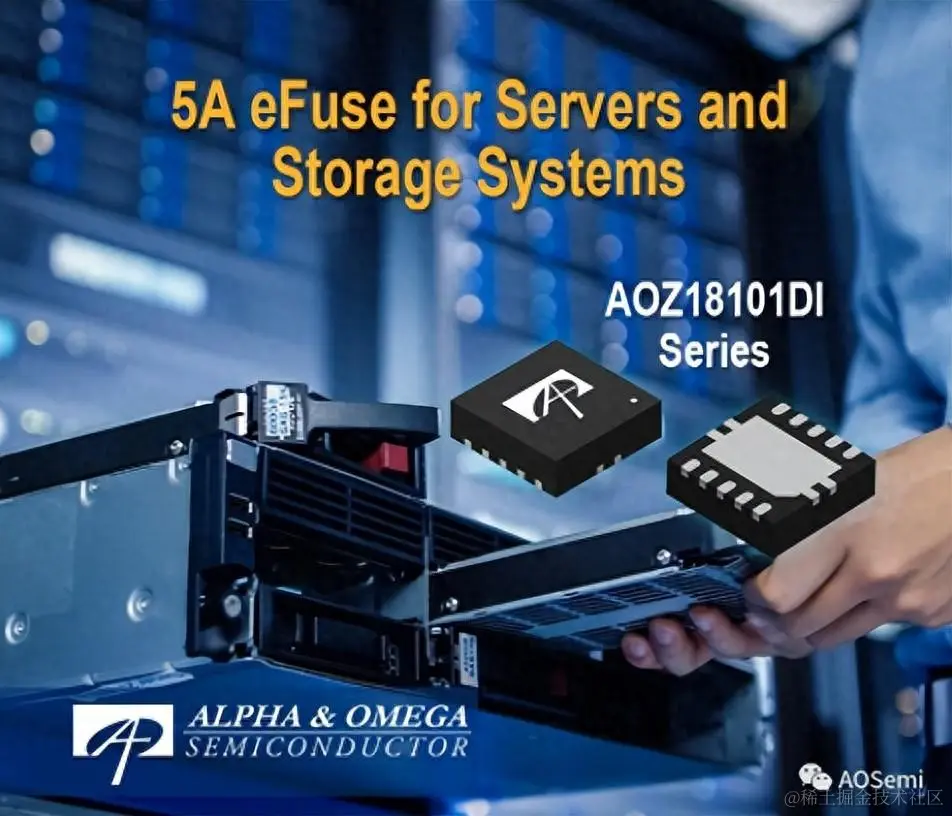 “服务器和存储等高可靠性系统需要总线保护设计。传统设计使用热插拔控制器和外部分立 FET,然而越来越多的人并不选择这种解决方案,取而代之的是由 eFuse 提供的更紧凑的解决方案。AOS 将 TrenchFET 技术与领先的 IC 设计相结合,可实现紧凑、强壮的 eFuse 方案”。