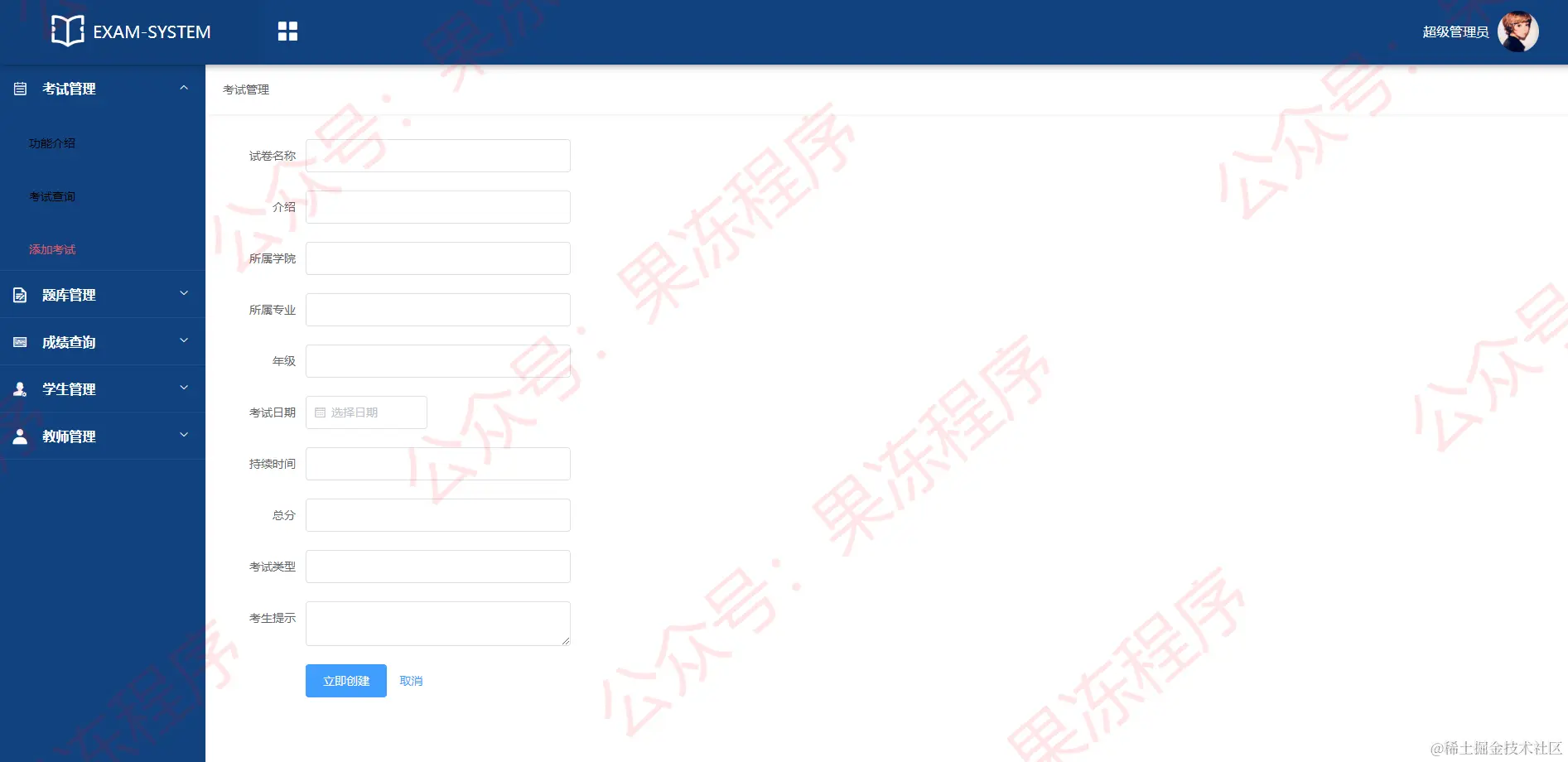 3.考试管理-考试添加