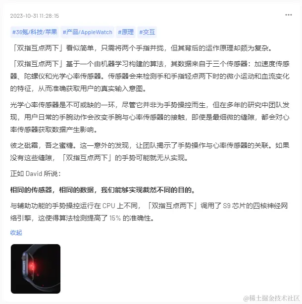 当然,笔记多了有时候翻阅也会比较困难,这就需要我们寻找方式对笔记分类。【标签】功能就挺好用的,最多三级的标签分类以及单条笔记多个标签的方式让我能够快速找到自己需要翻看的笔记。至于分类的方式每个人各不相同,书中提到的I.A.R.P方法按照 【领域、项目、兴趣、临时笔记】 的方式来进行多级分类可以给我们带来参考,但是我自己可能不太适用于这套方法。我的习惯一般是按照【来源、内容、领域】 来分类,比如说我在36Kr上看到一篇关于【Apple Watch双指互点两下】的信息,我会这样打标签: #36氪/科技/苹果 #产品/AppleWatch #原理 #交互。每个人都可以尝试探索出适合自己的分类方式,无限的个性化才是极简功能背后的逻辑。