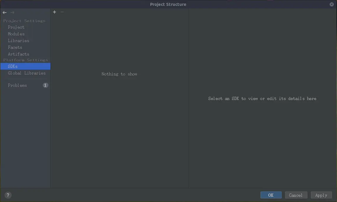 File -> Project Structure...或者快捷键Ctrl+Shift+Alt+S打开配置界面,左侧选择SDKs标签进行新增SDK的操作如下: -