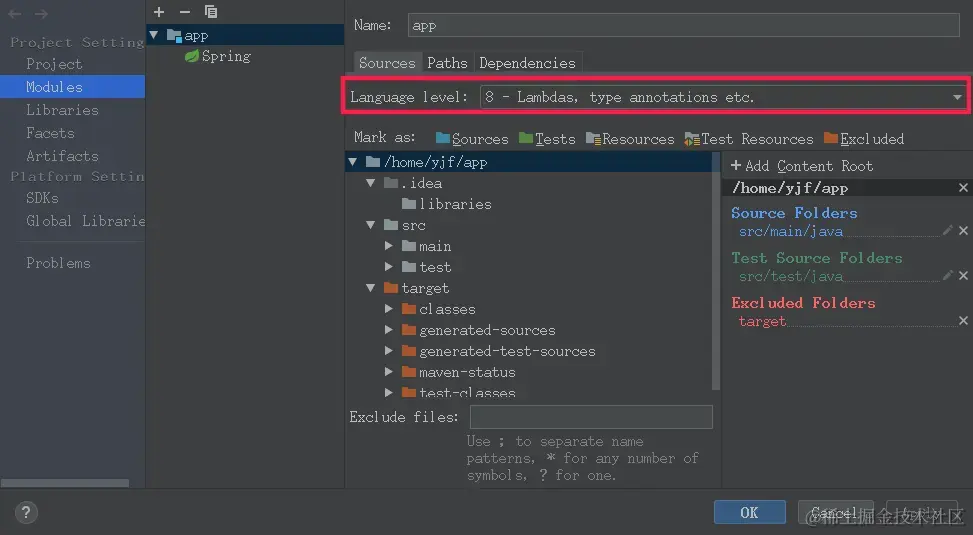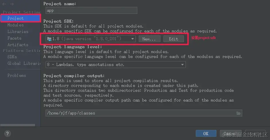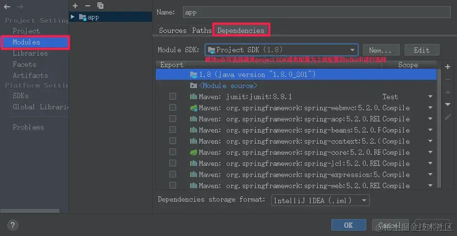 Project Structure配置界面进行项目和具体项目下的模块进行配置,如下: